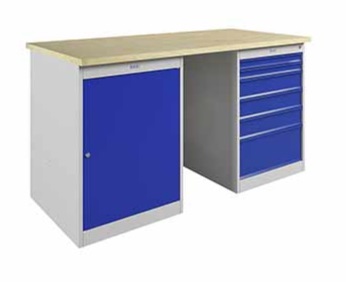 Expert WS (№161) верстак двухтумбовый, 1 секция: с дверцей, 2 секция: 5 ящиков. Столешница выполнена из фанеры толщиной 30 мм. Размер столешницы: 1600 x 750. Высота рабочей поверхности 870 мм. БЕЗ перфорированного экрана и комплекта освещения.