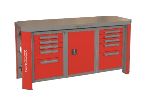 ГЕФЕСТ-ВС-515 профессиональный верстак. Столешница гнуто-сварная, толщина листа стали  3 мм. Рабочая поверхность: 1740 х 600 мм, высота 850 мм. Верстак с тремя тумбами, 1 секция: 5 ящиков, 2 секция: с дверцей, 3 секция: 5 ящиков.